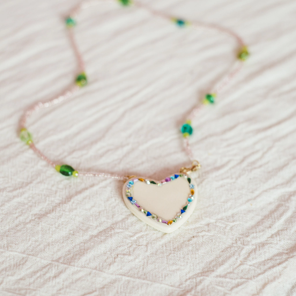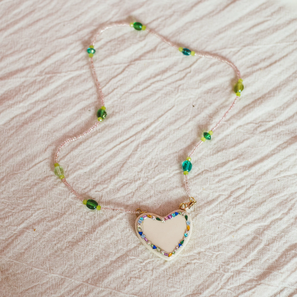 Collar de la coleccion Espiritu. Estos collares son piezas únicas, tienen un dije central de cerámica, esmaltado y realizado a mano. Estan confeccionados integramente con cristales de roca, piedras, caracoles, mostacillas de vidrio, enganches y prendeduras de metal. Son piezas únicas e irrepetibles, pensados como tu amuleto de proteccion.