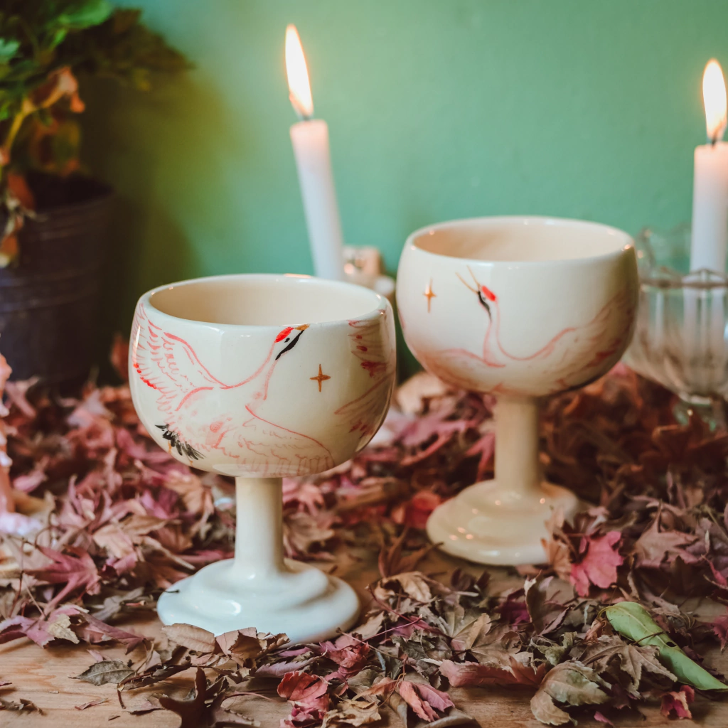 De las nuevas piezas, las copas son sin dudas mis favoritas. Realizadas a mano una por una, mantienen eso de ser muy parecidas pero con imperfecciones del trabajo a mano que las hacen aun mas especiales. Por su forma estas copitas puede utilizarse tanto como para bebidas, o para servir algun postrecito o ensalada de fruta.