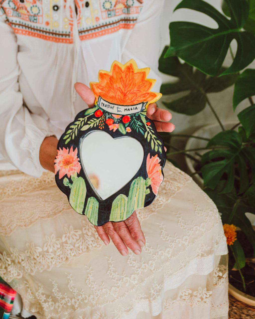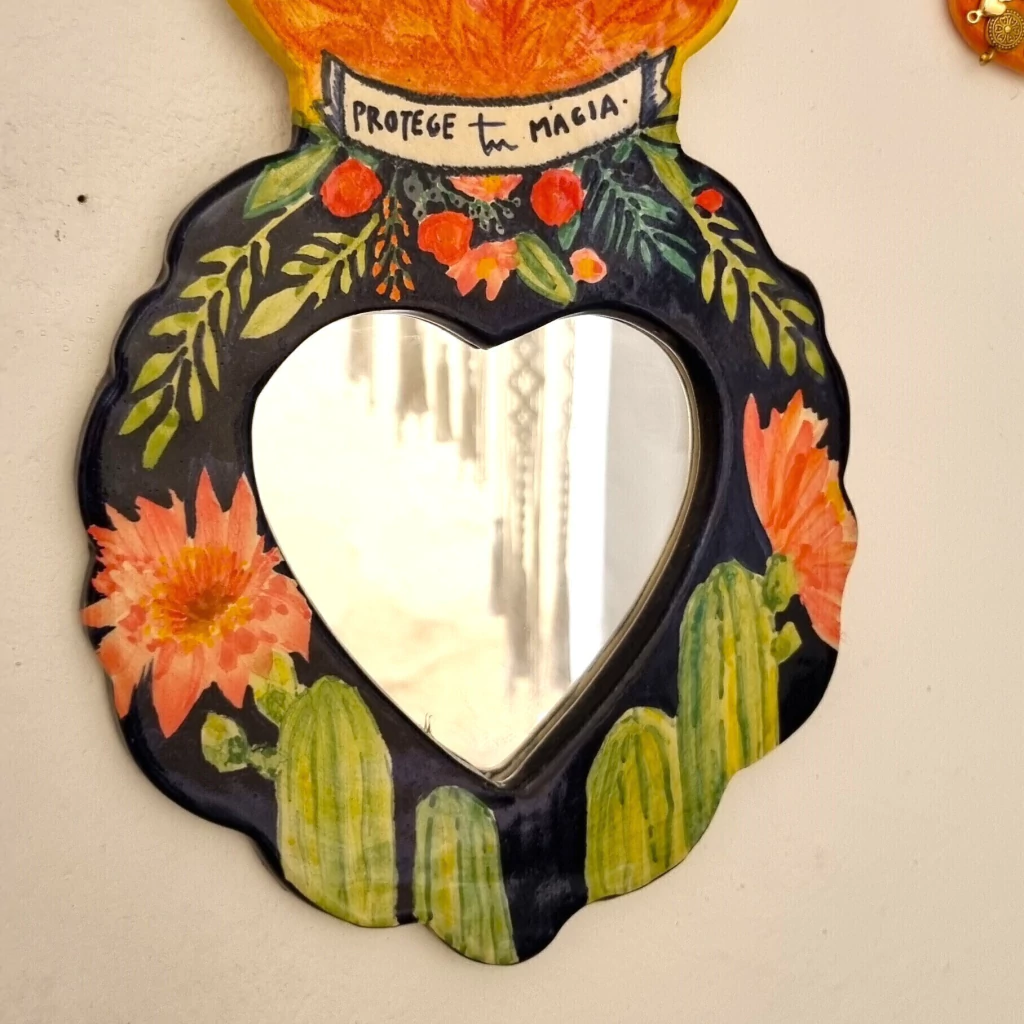 Espejitos inpirados en Mexico. Son todos piezas únicas hechas a mano en su totalidad , vas a tener en tus manos una pieza colorida, vibrante y original. Por el lado de atras tienen un ganchito similar al de los cuadros para colgar. Estos espejitos estan pensados para realzar con sus hermsoos colores cualquier espacio de tu hogar.