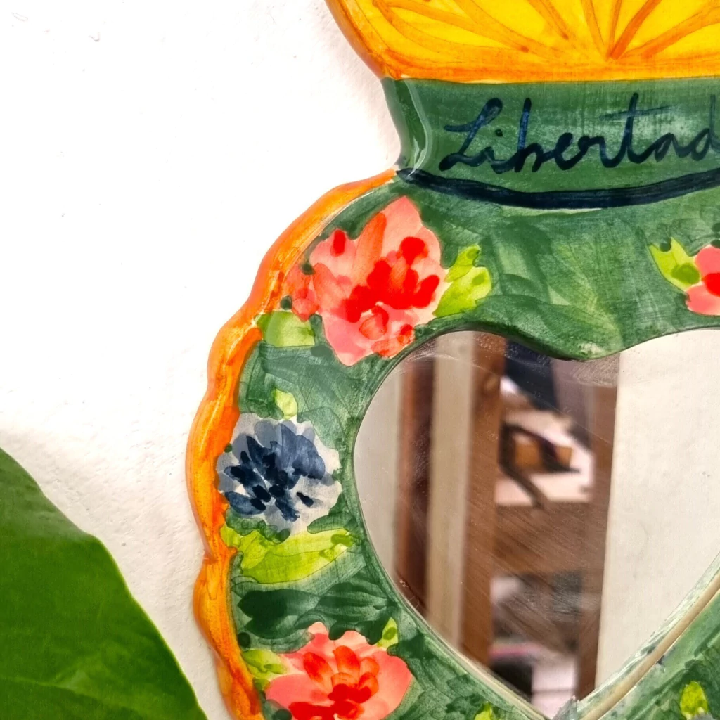 Espejitos inpirados en Mexico. Son todos piezas únicas hechas a mano en su totalidad , vas a tener en tus manos una pieza colorida, vibrante y original. Por el lado de atras tienen un ganchito similar al de los cuadros para colgar. Estos espejitos estan pensados para realzar con sus hermsoos colores cualquier espacio de tu hogar.