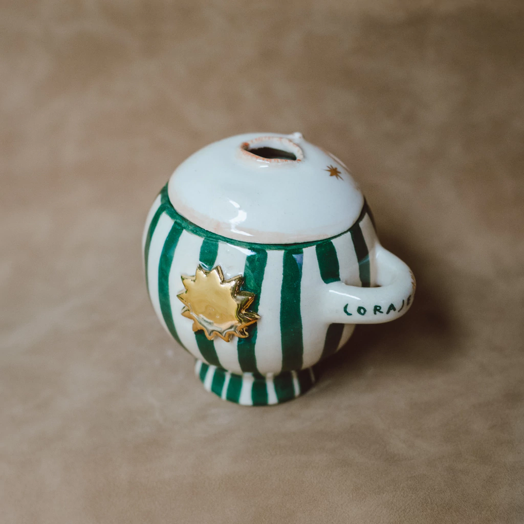 Estos sahumadores son los clasicos de coraje pero con la identidad de esta temporada. Los podes usar con bombitas, resinas y carbon, con hierbas,o lo que utilices para sahumar. Tienen soporte para sahumerio asi podes usarlo tambien comoportasahumerio. Tiene detalles de oro liquido y corazones en relieve con cristales de roca.