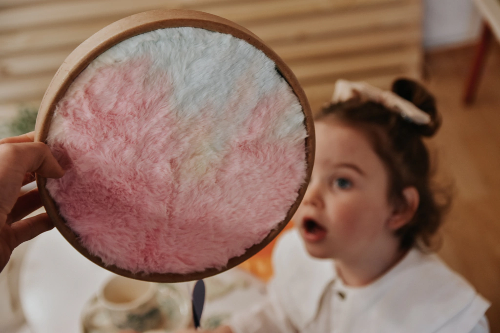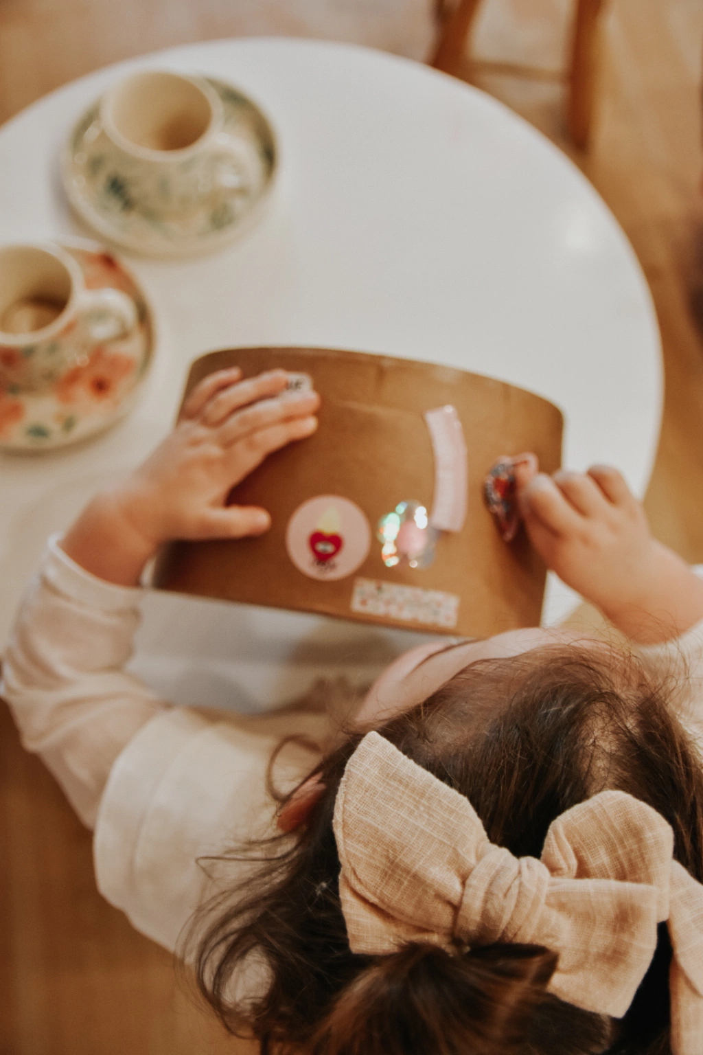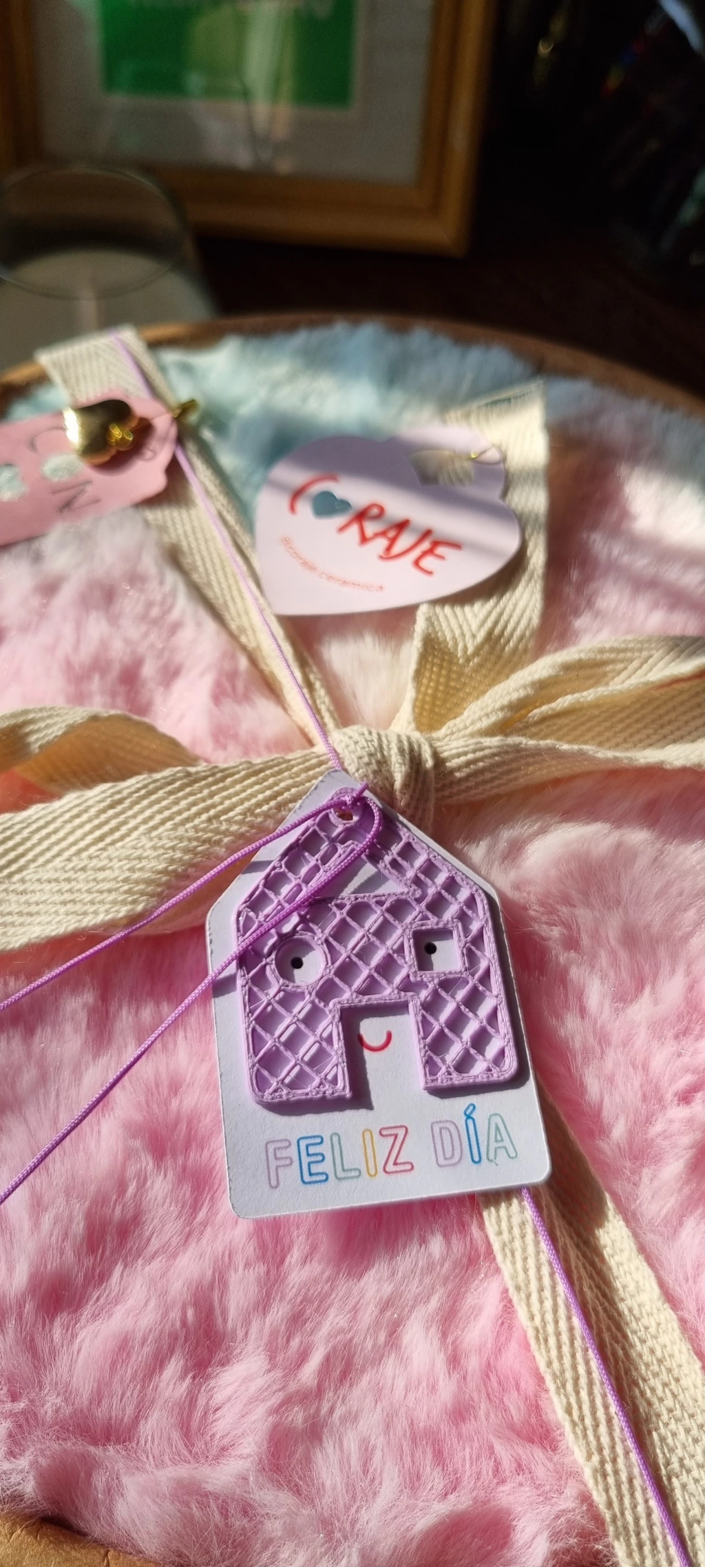 Set de regalo para el dia de la niñez. Es una caja magica y redonda con peluche multicolor en su tapa, tiene una guirnalda adherida a la tapa que se despliega cuando se abre,un moño con cinta hilera e hilo de color y tag de casita. En su interior contiene: